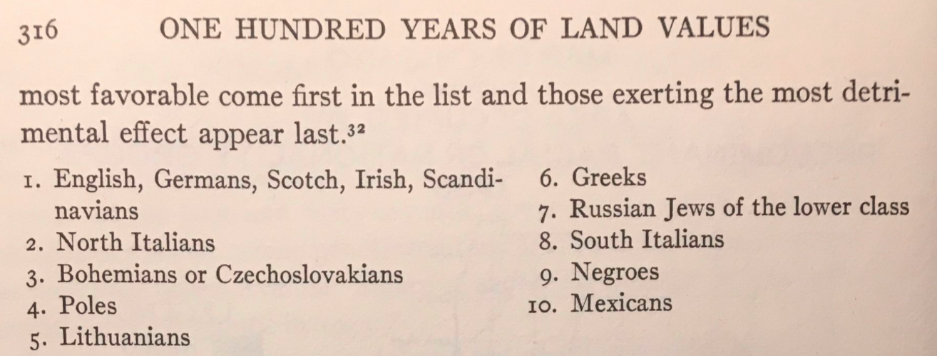 Homer Hoyt's Ranking of Racial/Ethnic Groups by Their Purported Effect on Home Values in Chicago